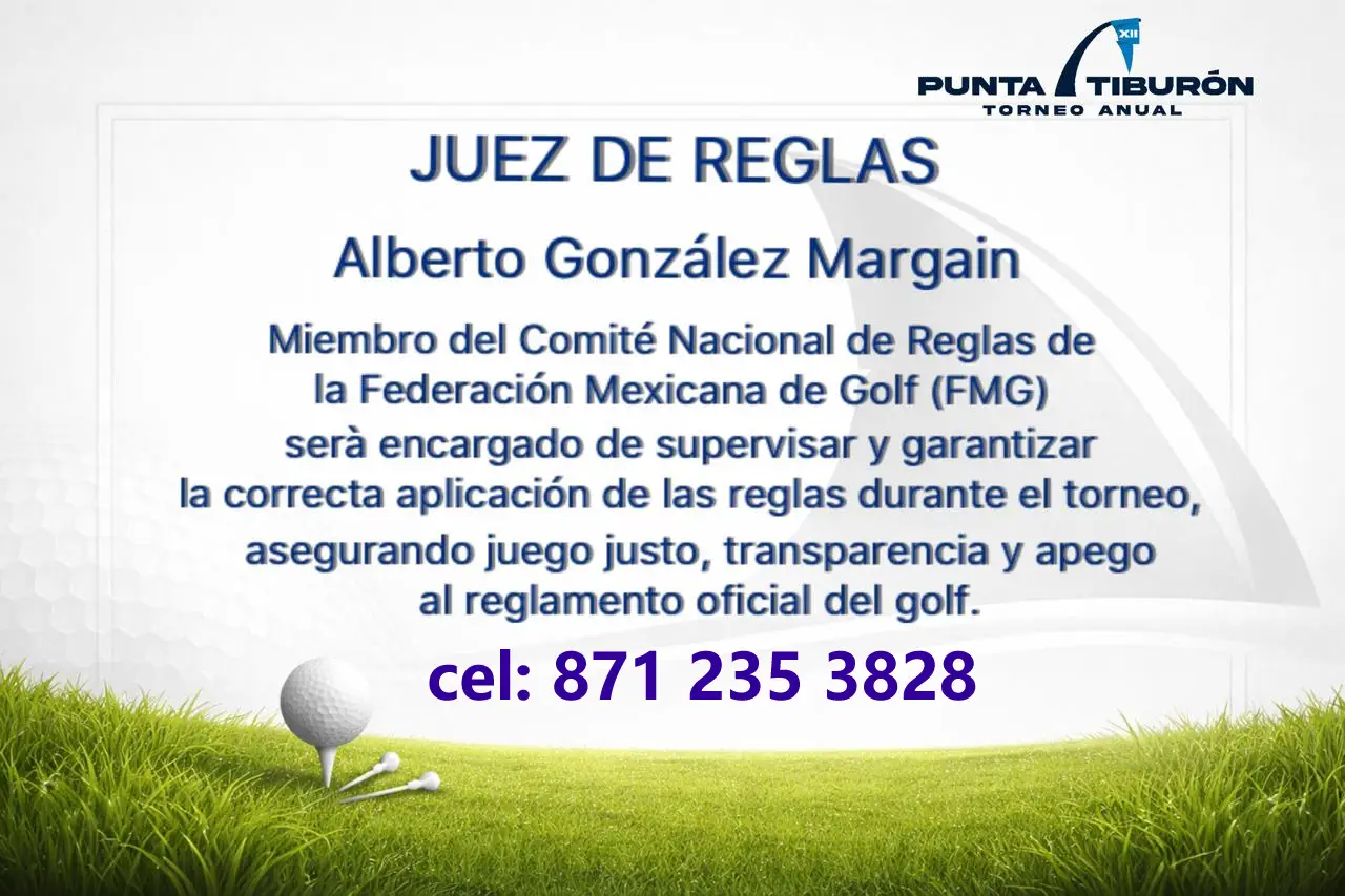 Regirán las Reglas de Golf de la USGA adoptadas por FMG, así como las siguientes Condiciones de Competencia y Reglas Locales, mismas que dejan sin efecto otras utilizadas en otros torneos incluyendo las propias del Score Card del Club o cualquier otro documento. Se designa al Sr. Alberto Glez. Margain como Arbitro del Torneo.